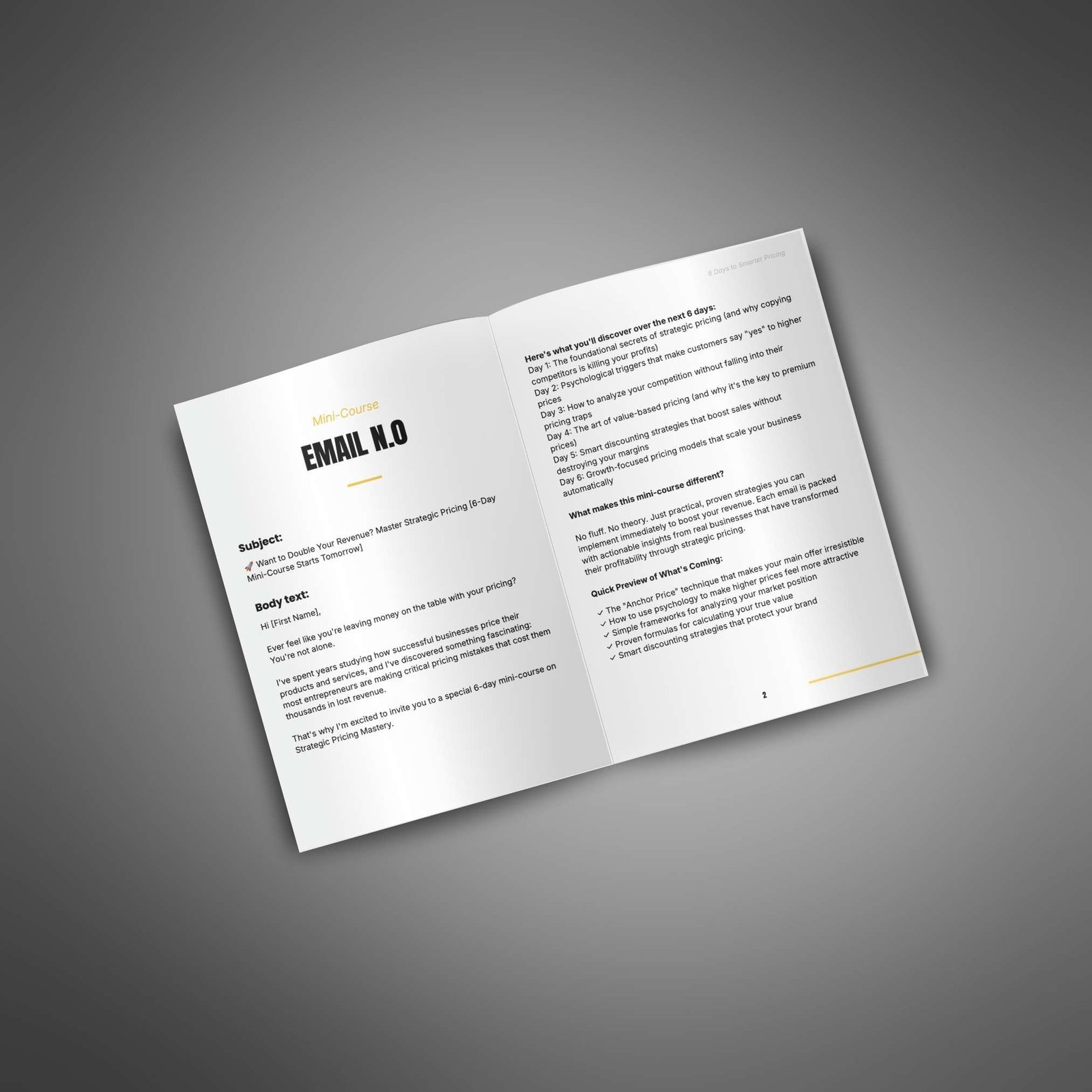 This done-for-you email course gives your customers a simple and effective way to teach strategic pricing. It helps you share real pricing strategies while naturally building trust, showing your value, and opening doors for upselling your own products or services.