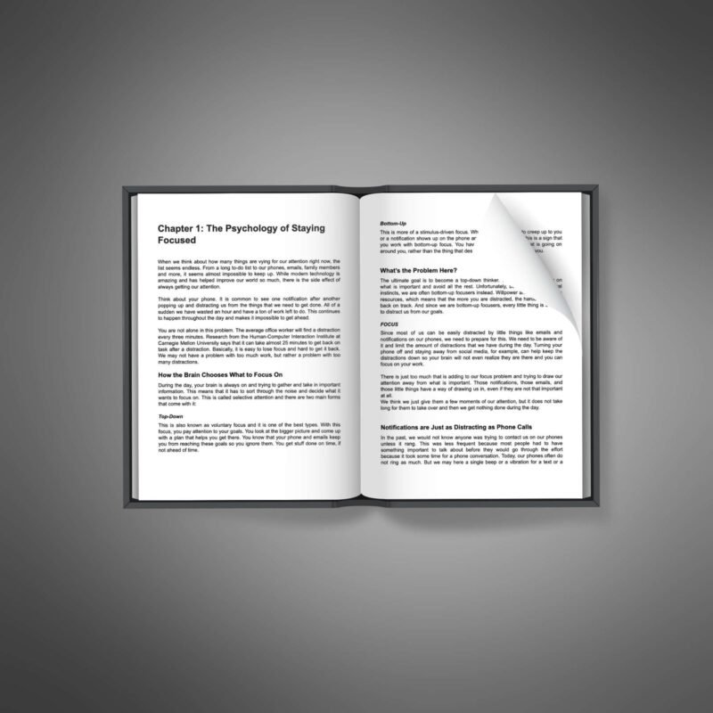 This ebook equips your clients with essential strategies to improve their ability to focus and get more done. It provides clear, step-by-step guidance on managing distractions, staying productive in a busy world, and building habits for long-term focus.