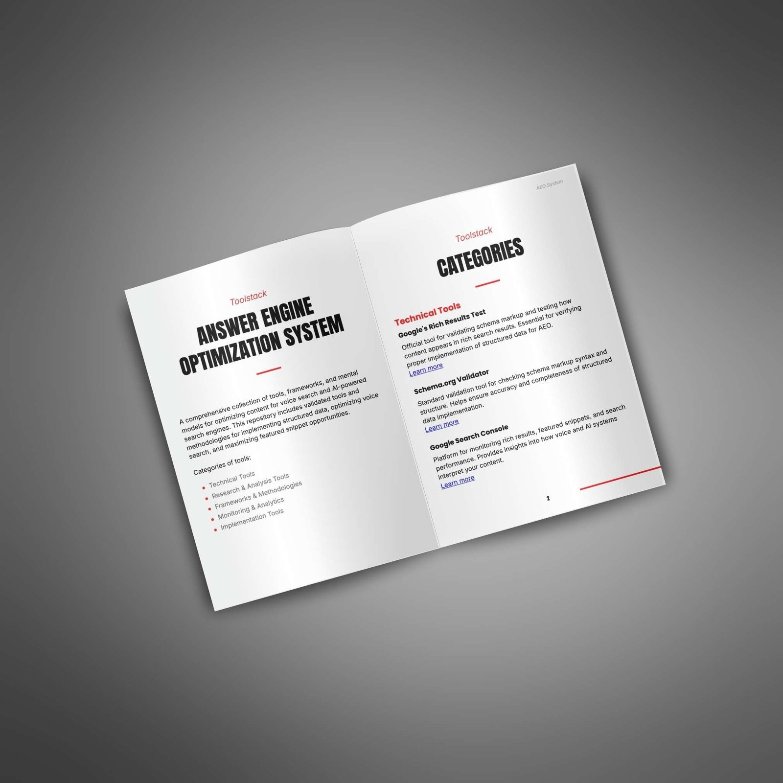 This toolstack gives your customers a full set of tools, templates, and systems made to help them succeed with Answer Engine Optimization. It covers everything from structured data to featured snippets, giving your customers the support they need to stay ahead in modern SEO.