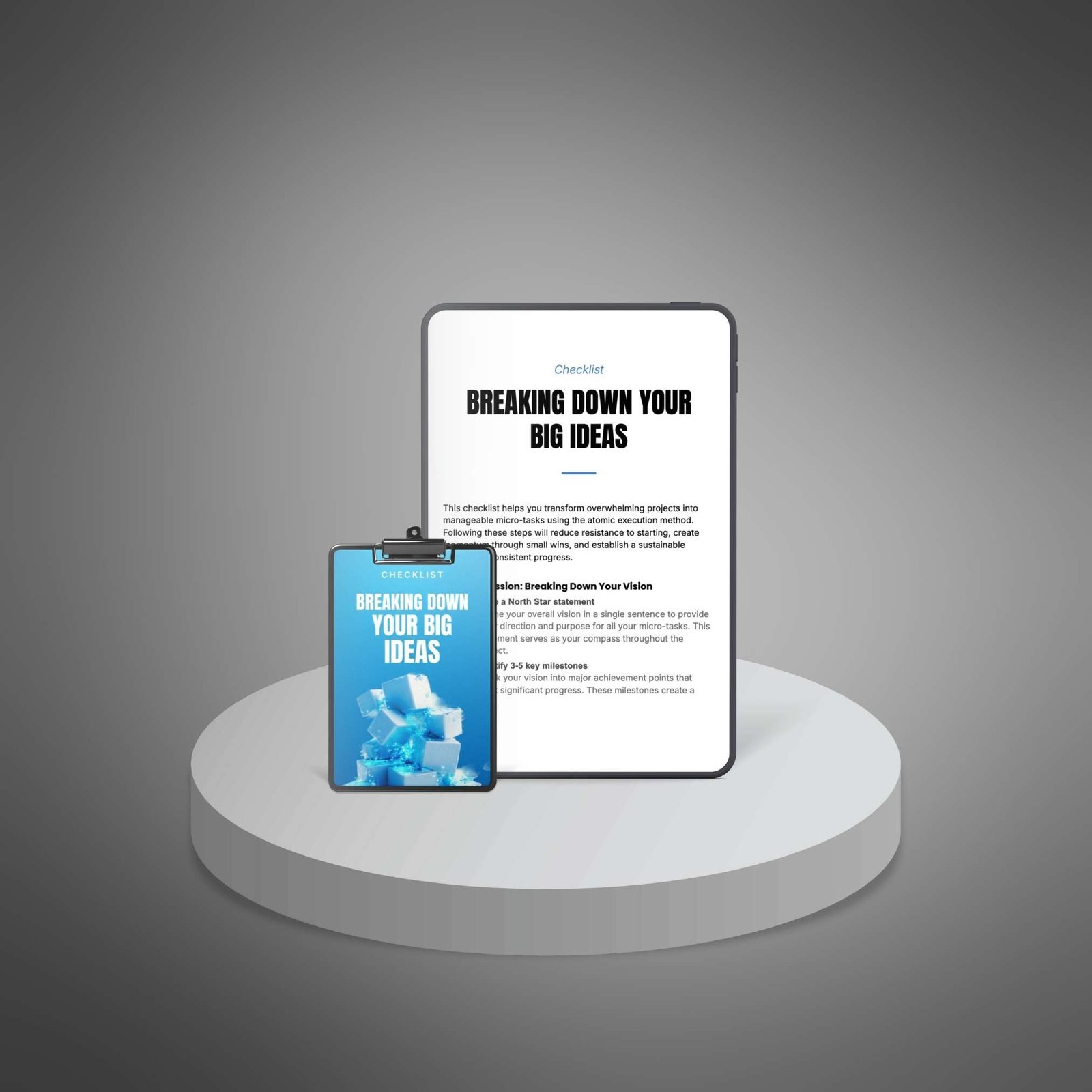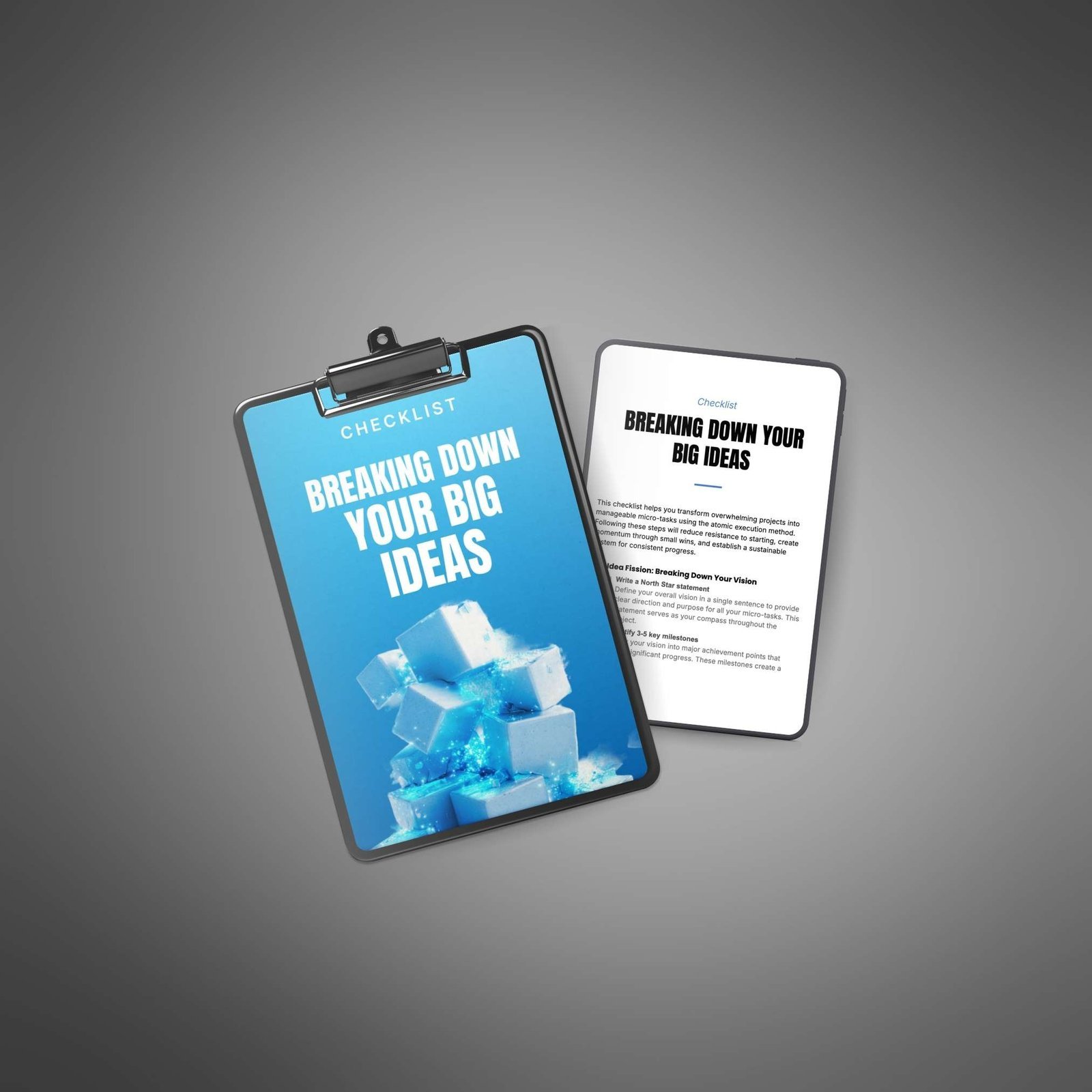 This checklist is an essential tool for your customers to break big ideas into small, clear tasks they can act on right away. It offers easy-to-follow steps for turning large, overwhelming projects into tiny micro-tasks, helping them get started faster, stay focused, and keep making progress every day.