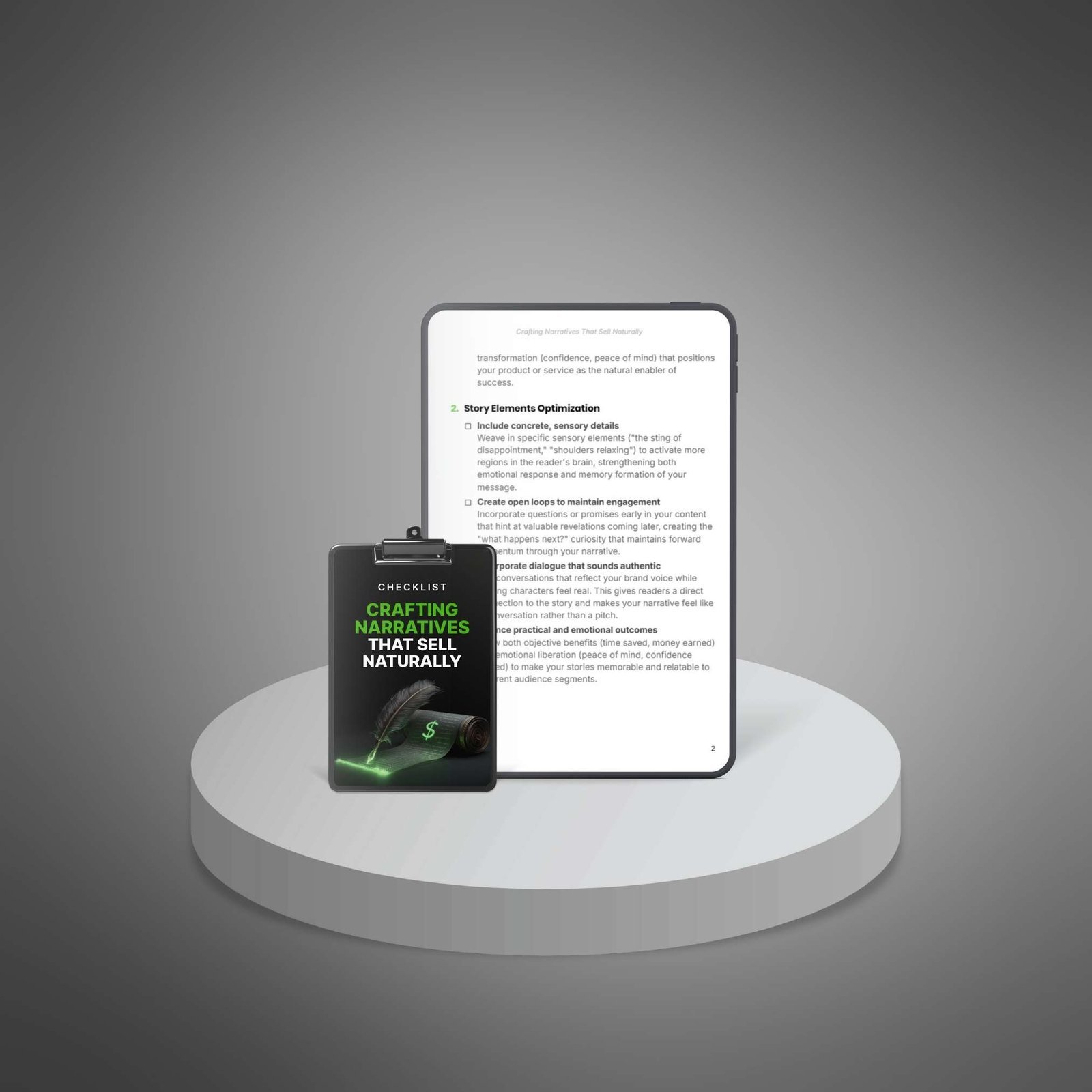 This checklist is an essential tool for your customers to write stories that connect with readers and lead to more sales. It offers easy-to-follow steps for every part of the storytelling process, helping them build trust, highlight value, and guide people to take action.