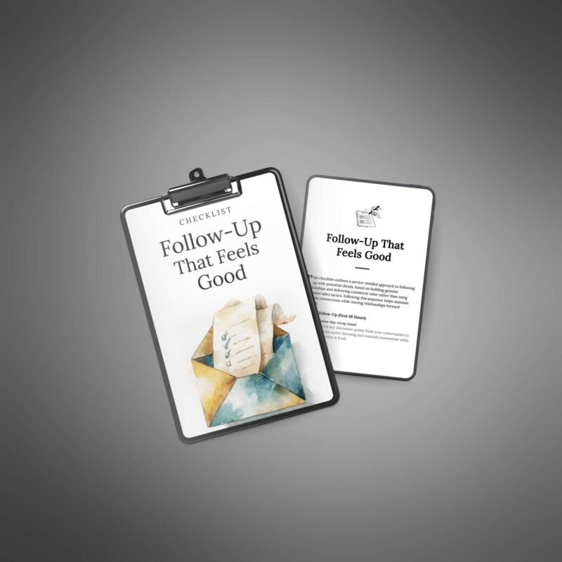 This checklist is an essential tool for your customers to follow up with potential clients in a way that feels kind, helpful, and real. It offers easy-to-follow steps for each stage of the follow-up process, helping them build trust, stay top of mind, and move relationships forward.