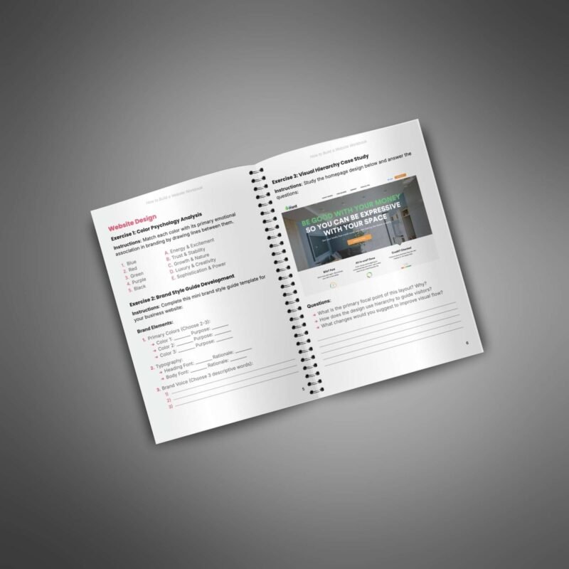 This workbook is an essential resource for your customers, guiding them through the process of building a professional website that stands out. With straightforward exercises and strategies, it walks them through each step, from planning their site to optimizing it for performance and user experience.