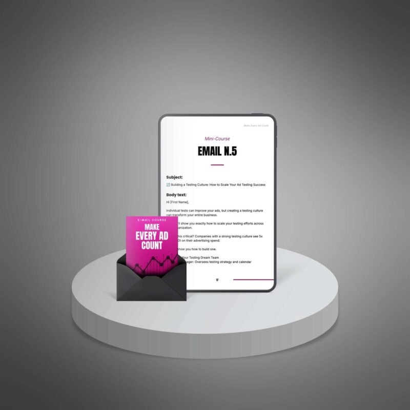 This course is a high-value digital product that educates, engages, and converts. It gives your customers the tools and insights they need to run smarter ad tests while positioning you as a trusted resource for their continued success.