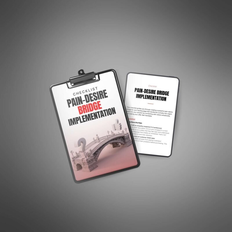 Provide your customers with a clear, structured guide to implementing pain-desire bridges that lead to stronger emotional connections, more persuasive offers, and real improvements in their conversions.