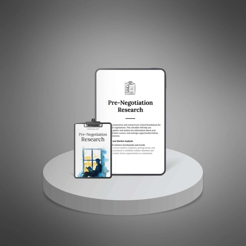 Discover simple steps to help your customers master pre-negotiation research, from understanding who they’re negotiating with to gathering facts that support their goals. It gives them everything they need to walk in prepared, stay calm, and make smart choices.