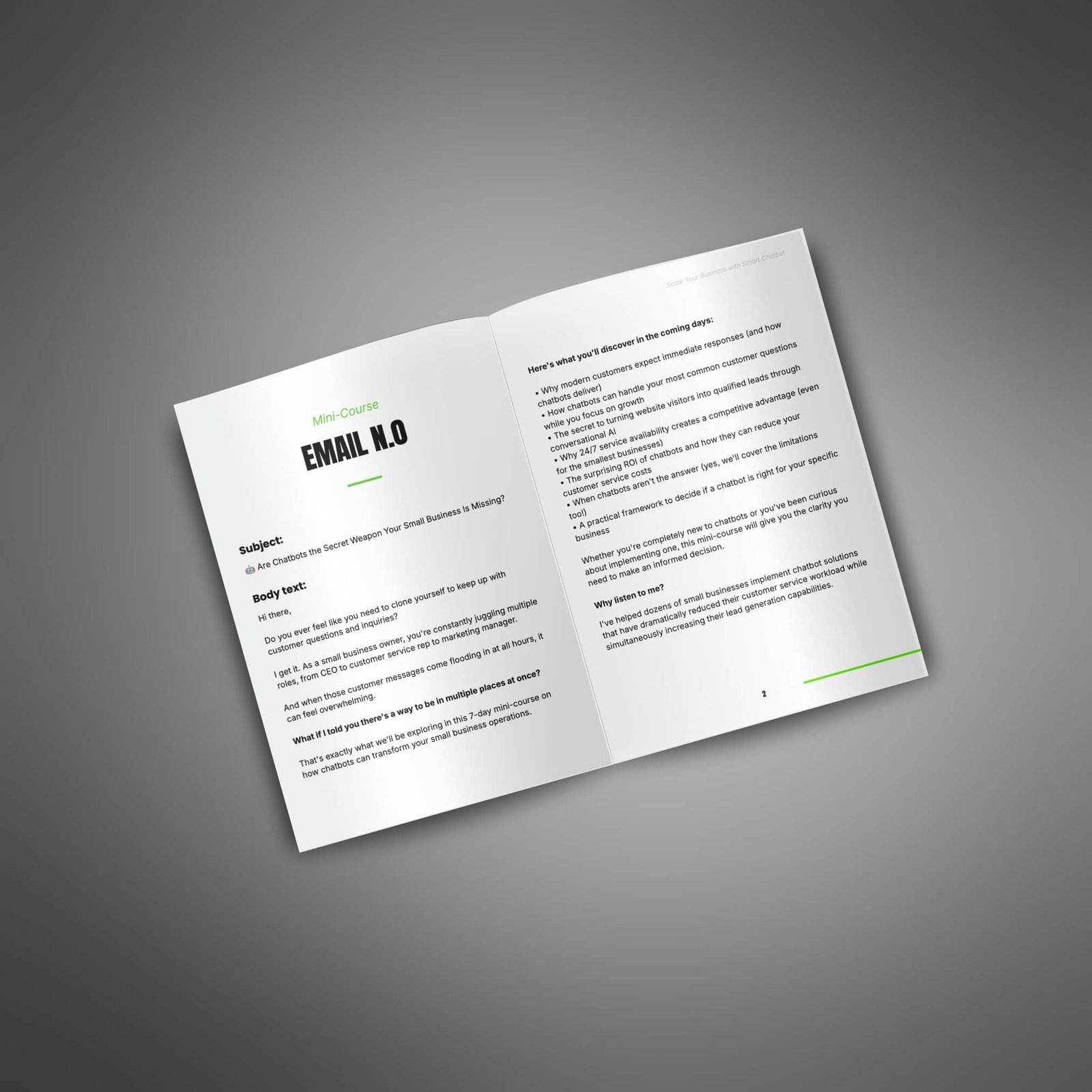 This done-for-you email course gives your customers a simple, step-by-step way to learn how chatbots can help small businesses grow. By offering this course, you provide helpful advice, build trust, and naturally guide readers toward your product or service as the next smart move.