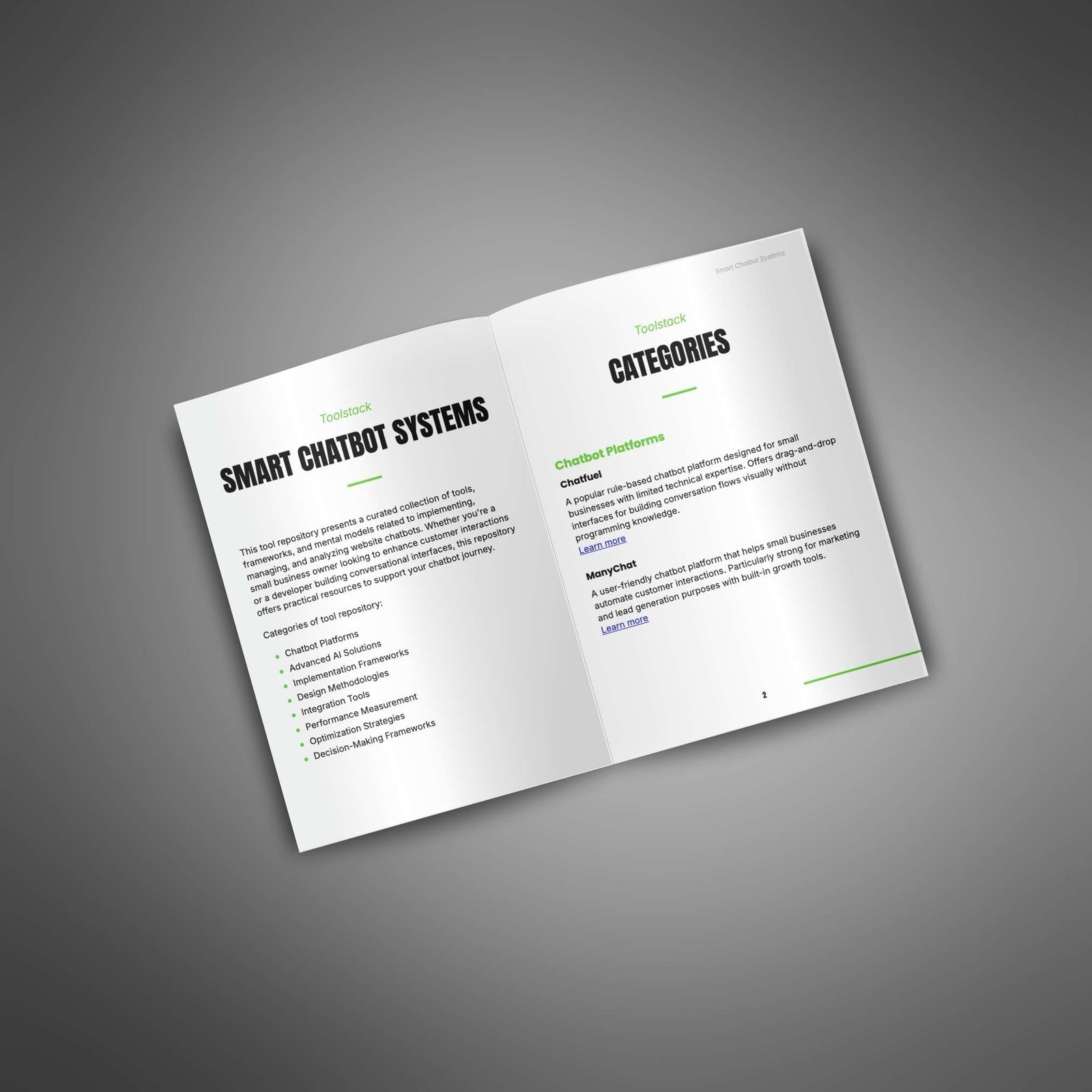 - Planning & Launch Frameworks: Step-by-step guides for designing chatbot conversations and getting ready for launch.