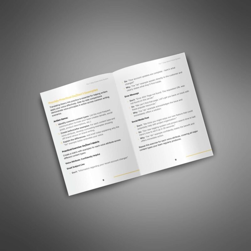 Guide to help your customers build a consistent and powerful brand voice with a step-by-step system for writing clear, confident messaging across every platform.