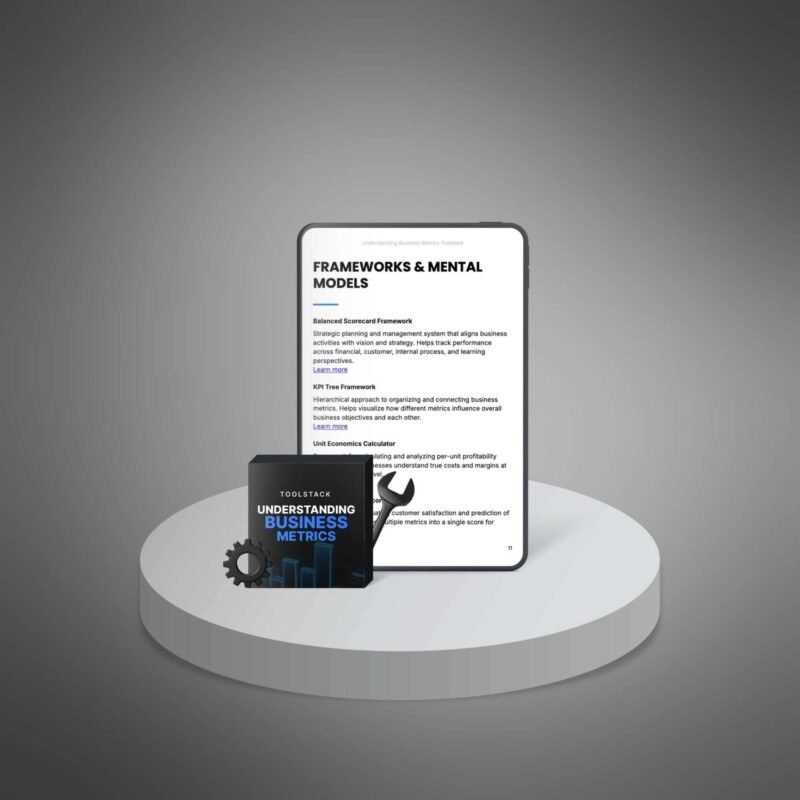 Offer your customers a toolstack that equips them to understand and optimize business metrics. Whether they are scaling a startup or refining an established business, this product provides the tools and frameworks they need for measurable growth and success.